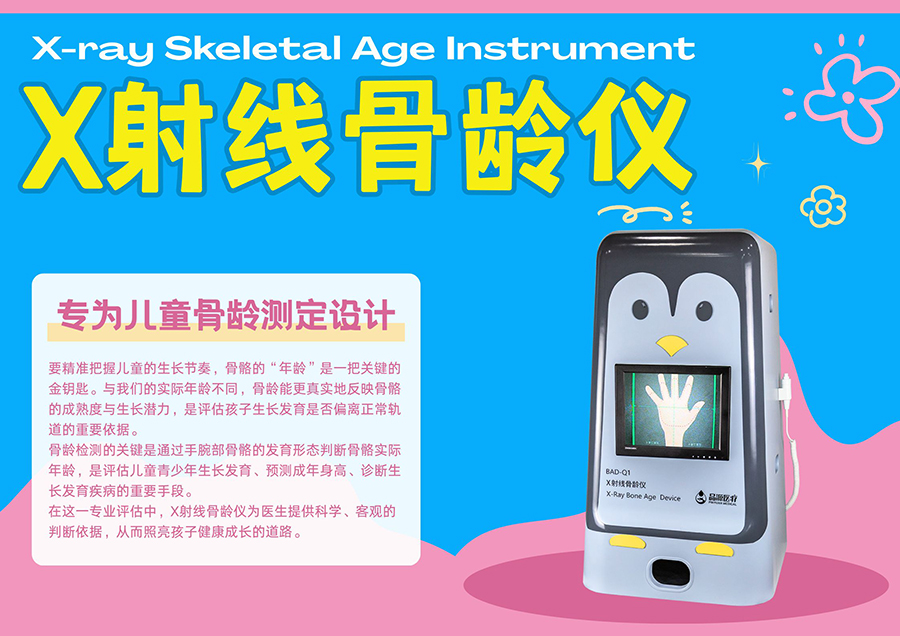 相较于传统骨龄检测方法,X射线骨龄仪通过低剂量辐射、标准化检测、自动分析、数据管理,解决了传统检测的核心问题,同时降低了操作门槛、拓展了服务场景。无论是儿童专科医院、综合医院的儿科 / 内分泌科,还是基层医疗机构、儿童生长发育门诊,X射线骨龄仪都能更好地适配骨龄检测的临床需求,为儿童青少年的生长发育评估提供更安全、更高效、更精准的技术支撑,也是未来儿童骨龄检测标准化、基层化发展的重要方向。